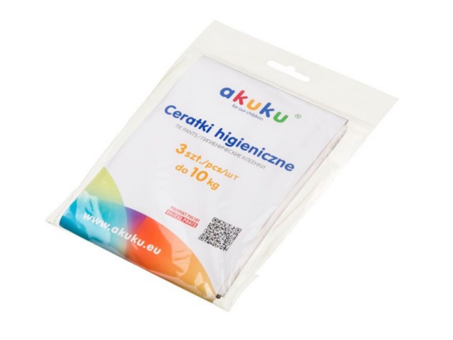 Ceratki higieniczne Akuku wykonane są z delikatnej, zmiękczonej folii, posiadają atest polskiego Instytutu Matki i Dziecka. Doskonale podtrzymują tradycyjne pieluszki, są wielorazowe. Łatwe do utrzymania w higienie. Prać w wodzie z mydłem.