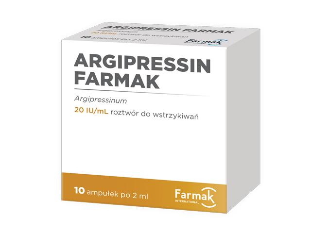 - Substancją czynną leku jest argipresyna. Jedna ampułka z 1 ml roztworu zawiera 20 IU argipresyny (w postaci octanu).