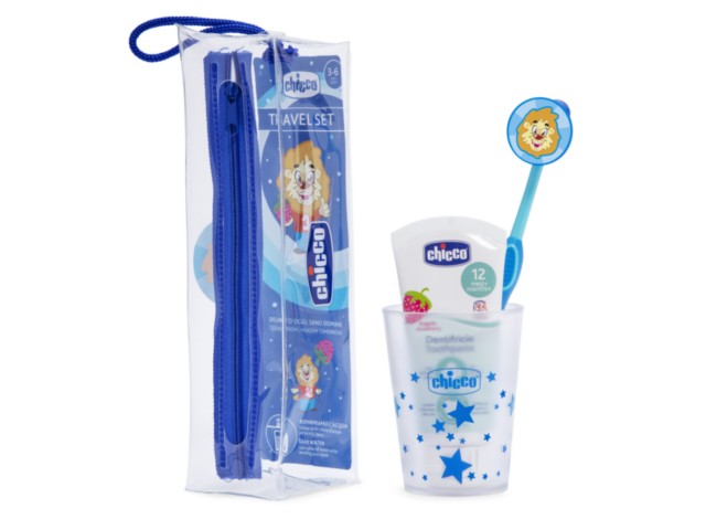 Cena Chicco Zestaw podróżny 8543100000 3-6 lat pasta + szczotka + kubek niebieski może się różnić w zależności od apteki, regionu, co wynika z indywidualnej polityki cenowej poszczególnych aptek.