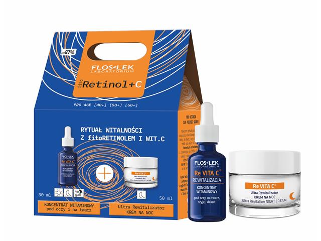 Cena Flos-Lek Zestaw REVITA C FITORETINOL+C Krem na noc i Koncentrat WIT. p/oczy na twarz szyję dekolt może się różnić w zależności od apteki, regionu, co wynika z indywidualnej polityki cenowej poszczególnych aptek.
