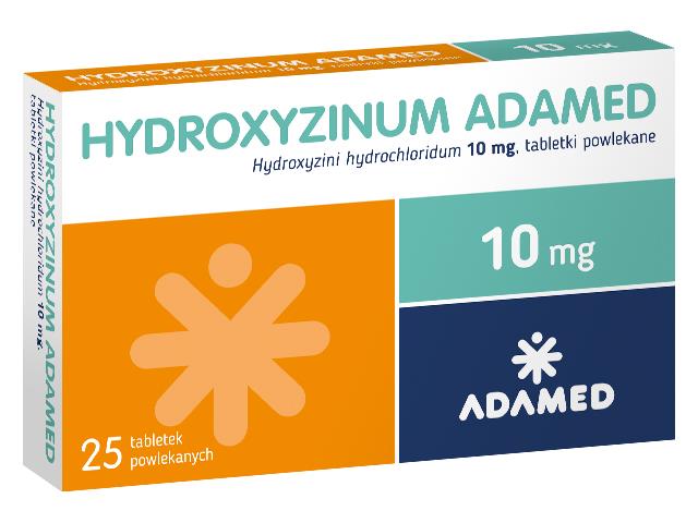Hydroxyzinum Adamed, 25 mg: Każda tabletka powlekana zawiera 25 mg hydroksyzyny chlorowodorku.