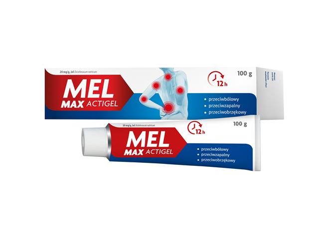 Podczas karmienia piersią Mel Max Actigel może być stosowany jedynie na zalecenie lekarza, ponieważ diklofenak przenika do mleka matki w niewielkich ilościach. W takim przypadku, leku nie należy nakładać na piersi karmiących kobiet, ani też na duże powierzchnie skóry lub długotrwale.