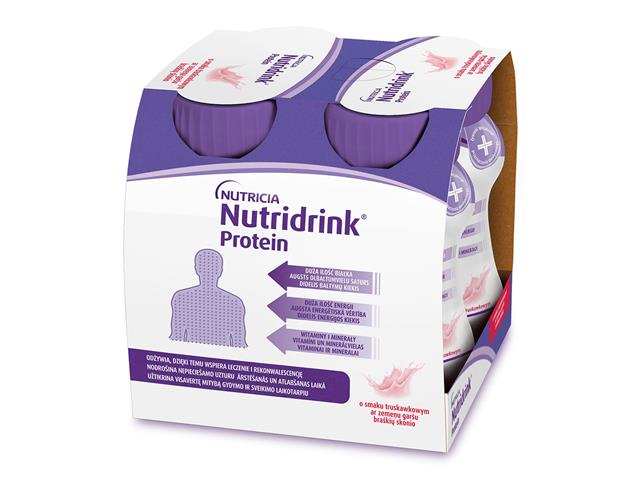 Nutridrink Protein 125 ml to wysokoenergetyczny i wysokobiałkowy preparat odżywczy w płynnej postaci, przeznaczony do picia. Zawiera dużą ilość białka oraz wszystkie pozostałe składniki odżywcze w odpowiednich proporcjach: tłuszcze, węglowodany oraz komplet witamin i minerałów. Jego zaletą jest to, że w bardzo małej objętości (125 ml) dostarcza dużo energii i wszystkie niezbędne osobie chorej składniki odżywcze. Dzięki formie płynnej i małej objętości jest łatwy do podania. Może być uzupełnieniem standardowej diety osoby chorej, do spożywania między posiłkami lub może zastąpić posiłek.