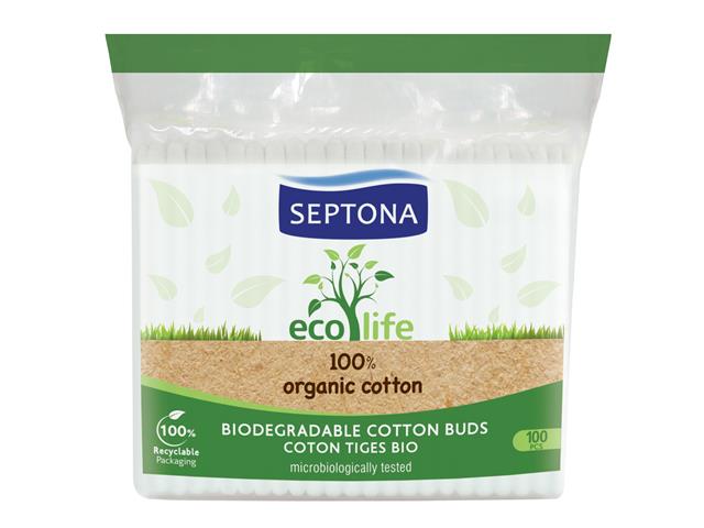 Septona patyczki kosmetyczne EcoLife 100 sztuk. Produkt w 100% wykonany z bawełny organicznej