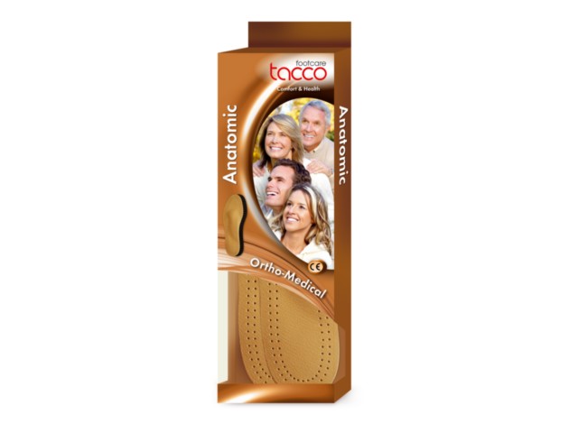 Tacco Anatomic jest pełną wkładką dla stóp z płaskostopiem podłużnym i poprzecznym z warstwą wierzchnią wykonaną z uszlachetnionej skóry owczej, z oddychającą spodnią warstwą z funkcją RelaxFlex. Elastyczna warstwa zapobiega zmęczeniu stóp, odciąża mięśnie, ścięgna i więzadła.
