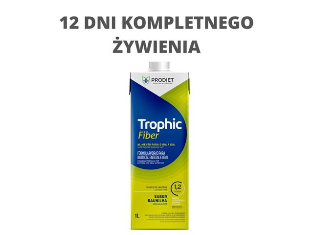 Trophic Fiber 1200 kcal to kompletna pod względem odżywczym wysokobiałkowa dieta do żywienia dojelitowego przez sondę lub do podaży doustnej. Zawiera niezbędną dobową porcję wszystkich składników odżywczych, w tym witamin i mikroelementów. Zwiera unikalną mieszaninę błonnika rozpuszczalnego i nierozpuszczalnego. Dla pacjentów niedożywionych lub zagrożonych niedożywieniem związanym z chorobą.