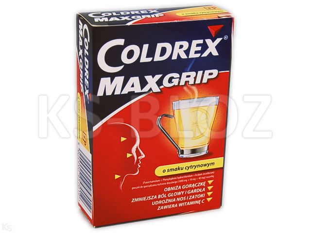Coldrex Maxgrip smak cytrynowy interakcje ulotka proszek do sporządzania roztworu doustnego (1g+40mg+10mg)/sasz. 5 sasz.