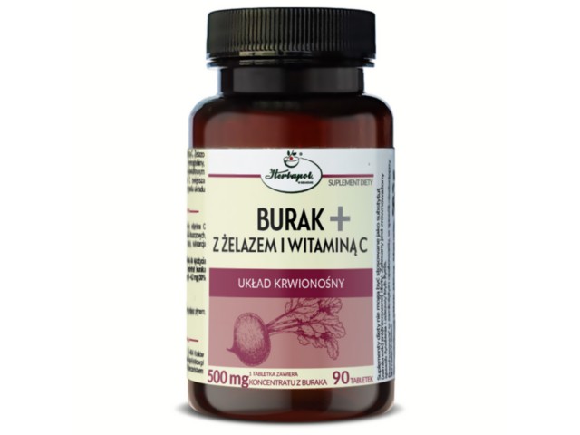 Burak+ z żelazem, witaminą C interakcje ulotka tabletki  90 tabl.